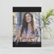 Ce faire-part de fin d'études décontracté branché présente deux photos de l'université ou du baccalauréat. Décontracté, moderne script blanc apparaît sur la couverture photo avant et la bordure noire avec une photo du diplômé sur le dos avec simple police noire pour le faire-part. Vous pouvez ajuster le libellé au verso de la carte pour en faire soit une simple faire-part de graduation, soit une invitation de groupe. Un design simple et élégant pour la remise des diplômes de cette année !