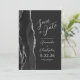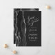 Le bord gauche de cet élégant mariage moderne, sauf la carte de date, est doté d'une bordure en aquarelle noire taillée avec une parties scintillant en faux argent. Le texte personnalisable combine un script gris argenté et des polices sans serif sur un arrière - plan noir ardoise. L'envers présente un design d'agate noir et argent assorti.