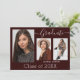 Belle, 3 photos, cartes postales de graduation avec script de calligraphie moderne en blanc sur bordeaux. Pour voir d'autres articles comme celui-ci, visitez mon magasin ici à "www.Zazzle.com/LakeViewCardCo". Merci