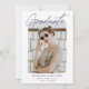 Faire-part tendance de remise des diplômes avec la photo du diplômé encadrée par une bordure blanche rugueuse. "Graduate" s'affiche dans un script de signature violette avec le nom du diplômé, le nom de l'école et l'année de diplôme indiqué ci-dessous. La faire-part moderne de graduation s'inverse pour afficher un motif de ligne unique violet et blanc estampé. Cette carte de faire-part de remise de diplômes photo est parfaite pour les diplômes du lycée et de l'université.