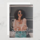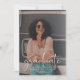 Une carte de faire-part de graduation propre et moderne qui imite l'effet d'une superposition de vellum, avec votre photo et superposée avec "diplômé" en caractères blancs de script moderne. Personnalisez avec vos détails dans une police blanche moderne.