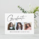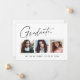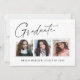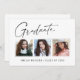 Cartes de faire-part de graduation "3 Photo" propres, tendance, modernes et élégantes, avec des éléments de design de texte moderne avec un script d'encre calligraphie unique. Les photos du diplômé sont accentuées avec une délicate et minimaliste descente de pensionnat. Le dos de la carte offre des espaces de texte personnalisés pour des informations sur votre diplôme ou peut être effacé si vous souhaitez écrire un message à la main. Noir et blanc ou customiser facilement l'arrière - plan pour correspondre à la couleur primaire de votre école ou à n'importe quelle couleur de votre choix. Idéal pour les personnes âgées du secondaire, du collège et de l'université.