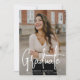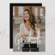 Faire-part moderne de graduation avec votre photo verticale sur le devant avec "Graduate" affiché dans une superposition manuscrite blanche. Personnalisez le devant du faire-part de remise de diplômes avec le nom du diplômé, le nom de l'école et l'année de remise de diplômes. La simple faire-part de graduation inverse pour afficher une photo supplémentaire avec de l'espace fourni pour inclure les plans futurs du diplômé, les détails de graduation, etc. Les 2 faire-part de remise de diplômes photo sont parfaits pour les diplômes du secondaire et collégial!