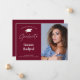 Annoncez l'accomplissement de votre diplômé avec ce carte photo manuscrit moderne en couleur arrière - plan bordeaux modifiable. CONSEIL PHOTOGRAPHIQUE : Pour obtenir les meilleurs résultats, choisissez une photo avec le sujet au milieu et/ou pré-recadrez-la avec une forme similaire à celle montrée AVANT de télécharger et elle remplira parfaitement l'espace photo. CHANGEMENT DE COULEUR : Vous pouvez modifier la couleur de l'arrière - plan en cliquant sur l'onglet CUSTOMISER PLUS LOIN. Contactez le concepteur si vous souhaitez modifier ce design sur un autre produit ou si vous souhaitez des articles complémentaires.