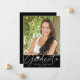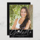 Annoncez l'exploit de votre diplômé avec cette carte de faire-part photo couleur personnalisée avec une typographie manuscrite moderne design de titre GRADUATE accentué d'un bouchon de graduation en feuille blanche et 2 photos (une de chaque côté). L'arrière offre un endroit pour inclure des renseignements supplémentaires sur les réalisations, les activités et les plans futurs de votre diplômé, selon vos besoins. Modifiez les couleurs du graphique, du texte et de l'arrière - plan GRADUATE dans EDIT en couleurs scolaires ou pour coordonner vos images. ASSISTANCE : Pour obtenir de l'aide sur la modification ou la personnalisation de la conception, le changement de couleur, le transfert de la conception vers un autre produit ou si vous souhaitez coordonner des éléments, contactez le concepteur AVANT DE COMMANDER via l'onglet MESSAGE Conversation Zazzle ou envoyez un courriel à makeitaboutyoustore@gmail.com.