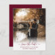 Choisissez votre photo de fiançailles préférée et créez une belle photo de mariage bordeaux enregistrer la carte de date en utilisant notre modèle personnalisé rapidement et facilement.