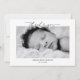 Voici notre carte Faire-part de naissance moderne, la façon idéale de partager votre nouveau membre de la famille avec des proches. Cette carte présente une typographie de script avec un petit coeur élégant, créant un look intemporel et élégant. Personnalisez-le avec une photo de votre nouveau-né et partagez leur état de naissance, y compris leur nom, date de naissance, poids et longueur. Non seulement cette carte annoncera l'arrivée de votre bébé, mais elle sert aussi de remerciement à ceux qui vous ont soutenu tout au long du chemin. Célébrez votre petit-fils précieux avec cette belle carte Faire-part de naissance personnalisable.