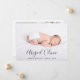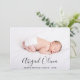 Script moderne Baby Name Photo Collage Faire-part de naissance Le devant de la carte est une grande photo avec une superposition de script élégante et moderne qui indique le nom du bébé en noir. La ligne ci-dessous est pour les statistiques de naissance des bébés. Le dos offre un collage de trois photos une ligne de texte pour les noms de famille. Le design est conçu comme une fille mais il conviendra aussi à un garçon.