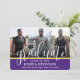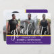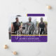 Partagez la joie d'un baccalauréat ou collégial avec un collage photo personnalisé 4 annonces violet et or. Les photos et tout le texte de ce modèle sont simples à personnaliser avec tous les détails de votre choix, tels que les renseignements sur l'invitation de la fête, les noms des parents, les distinctions spéciales, le titre du diplôme, la citation inspirante préférée, les coordonnées du diplômé, ou les plans pour l'avenir. Toutes les couleurs peuvent être customisées avec l'outil de design Zazzle. (CONSEIL EN MATIÈRE DE PLACEMENT D'IMAGE : Une façon simple de centrer une photo exactement comment vous voulez est de la rogner avant de la télécharger sur le site Zazzle.) La conception de bandes violettes et dorées comprend une calligraphie de script moderne avec un casquette de tableau de mortier, une élégante typographie de serif classique, et quatre photos de votre choix, telles que des images senior ou des images de la cérémonie de début. Veuillez noter que l'or est imprimé de couleur jaune et non de papier métallique. Offertes sous forme d'annonces numériques imprimées et téléchargeables, ces cartes de graduation modernes sont un moyen élégant de partager une fête spéciale avec la famille et les amis. Félicitations au diplômé !