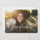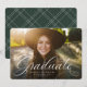 Un script classique et élégant diplômé en blanc est assis au bas d'une photo horizontale. Le texte personnalisé comprend un espace pour le nom du diplômé ainsi que les détails de l'école et de l'année. Le support vert classique a un motif de grille simple et la couleur peut être modifiée en cliquant sur "personnaliser davantage". Annoncez l'exploit de votre diplômé à vos amis et à votre famille avec ce design !