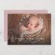 Présentez votre nouveau bébé avec ce faire-part de naissance photo classique doux et simple. L'accueil est un script élégant et moderne et il y a de la place pour un grand nom, des statistiques et des noms de parents aussi. Le dos est un rose vif moderne parsemé de blanc. Parfait pour partager des photos de nouveau-nés avec des amis et la famille!