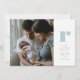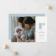 Une introduction simple pour votre nouveau petit featuring une seule photo, une grande initiale bleue, de la place pour les statistiques et les noms des parents ainsi qu'un dos coordonné à points. Vous souhaitez une couleur différente ? Cliquez sur "personnaliser" pour ajuster.