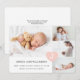 Annoncez l'arrivée de votre nouveau bébé avec notre carte simple et moderne de collage photo pour bébé faire-part de naissance. Le design comprend une mise en page de quatre collages photo pour afficher les photos de votre nouveau bébé. Personnaliser avec le nom du bébé, l'arrivée de la date de naissance, les statistiques de naissance et le monogramme du bébé dans un coeur rose. Le revers de la médaille présente un accueil personnalisé et l'amour des parents.