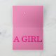 Simple baby girl announcement greeting card inside color et bottom is pink with the words A GIRL in contrasting pink