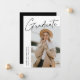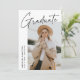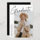 Carte de faire-part moderne avec une des photos du diplômé sur le devant avec "Graduate" dans un script manuscrit noir avec un arrière - plan blanc. Personnalisez avec le nom du diplômé, le nom de l'école et l'année de fin d'études. La faire-part minimaliste de graduation inverse pour afficher 4 photos dans une mise en page de type grille avec les plans futurs du diplômé ou d'autres textes personnalisés ci-dessous. Le faire-part de 5 diplômes photo est parfait pour les diplômés du secondaire et du collège.