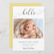 "Hello" dans une police de script élégante avec des swashes fantaisistes. Un faire-part de naissance photo simple et élégant pour bébé. Moderne, minimaliste et propre. Le côté arrière a un motif pois mignon.