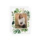 Faire-part de graduation botanique moderne avec votre photo préférée à l'intérieur d'un cadre géométrique entouré d'aquarelle peinte de verdure tropicale et de feuilles faux or. Le côté arrière a "Classe de l'année" dans une police manuscrite élégante avec les détails de l'école du diplômé.
