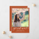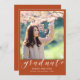 Envoyez à votre famille et à vos amis un faire-part unique de remise de diplômes photo personnalisée pour les wow. Ce design modèle moderne comprend votre photo encadrée en orange et en bas en blanc est le mot "Graduate" avec votre nom, l'école et l'année à personnaliser. Le dos de la carte a une image d'un casquette noir avec diplôme et "Classe de 20XX" en simple typographie noire. Conçu par l'artiste ©Susan Coffey.