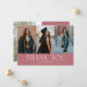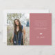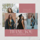 Carte de photo d'annonce de remise de diplôme moderne et élégante avec 3 photos sur le devant et 1 au dos. Le texte indique "MERCI". Ajoutez le nom du diplômé, les informations et le message pour personnaliser cette carte. Couleur rose clair.