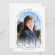 Cette faire-part de graduation minimaliste bleu marine et blanc est dotée d'une photo, d'une arche et d'une élégante typographie moderne.