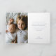 Cette carte pliée tout simplement charmante avec faire-part de naissance photo présente un design contemporain qui vous permet de la customiser facilement selon votre style. En haut, nous avons ajouté "BONJOUR, MONDE !" mais n'hésitez pas à changer cela à tout ce qui vous chante, que ce soit "BIENVENUE" ou "INTRODUCTION", etc. Si vous souhaitez souligner votre gratitude pour un cadeau et en faire un carte de remerciements, vous pouvez le modifier pour montrer "MERCI TELLEMENT !" ou similaire en haut. Et dans n'importe quel coque, vous pouvez inclure votre gratitude dans un court message à l'intérieur de la carte. Tout le texte à l'avant et aussi à l'intérieur de la carte est un élégant bleu moyen foncé, mais vous pouvez le changer en une autre couleur si vous le souhaitez. En choisissant un script pour le nom de votre bébé, nous recherchions quelque chose d'informel, avec la personnalité mais aussi un flux ordonné qui est facile à lire, et nous avons trouvé quelque chose que nous aimions. Si vous préférez un look plus minimaliste, vous pouvez supprimer sans remplacer l'un de nos exemples de statistiques - vous pouvez ne pas inclure l'heure de la journée ou la longueur, par exemple. Nous avons placé l'arrière - plan sur l'avant et la moitié intérieure qui a le texte comme transparent, pour laisser la couleur de votre papier simplement servir de tonalité de base. Vous pouvez changer cela en choisissant une couleur spécifique à la place. À l'intérieur de la moitié droite, nous avons inclus un texte d'espace réservé que vous pouvez remplacer par votre propre message. Vous pouvez modifier la police, la couleur et la taille du texte en fonction de votre style lorsque vous entrez votre message personnel ici. Ou, après avoir supprimé notre texte d'espace réservé, vous pouvez simplement laisser cette moitié de l'intérieur de la carte entièrement vide, de sorte que vous pouvez ajouter un message manuscrit avec vos signatures après avoir reçu vos cartes. Ou peut-être souhaitez-vous entrer votre message et supprimer nos exemples de noms en script sans les remplacer par les vôtres, afin de signer vos noms à la main sur chaque carte. Sur la moitié gauche de l'intérieur de la carte, vous remarquerez que nous avons ajouté un deuxième échantillon de photo. Nous avons inclus cette option parce que vous pourriez avoir du mal à décider entre vos deux photos préférées, dans lequel coque, vous n'avez pas besoin, puisque vous aurez de l'espace sur le devant et à l'intérieur pour les partager les deux! Mais vous pouvez également supprimer cette photo d'espace réservé intérieur sans la remplacer et laisser cette partie de la carte vide. N'oubliez pas ceci lors de la modification ! Dans n'importe quel coque, n'oubliez pas de supprimer tout le texte de l'espace réservé à l'avant et à l'intérieur ainsi que nos deux exemples de photos ! Le type de papier par défaut, matte, a une chaleur douce et résiste à l'usurpation, c'est donc un excellent choix pour écrire votre propre message. Vous pouvez modifier ceci en demi-brillant lorsque vous modifiez la carte si vous préférez cet aspect. Utilisez les outils de design intuitifs, vos photos préférées et votre inspiration pour personnaliser cette carte pliée faire-part de naissance personnalisée et la rendre unique à vous! Et s'il vous plaît consulter notre collection d'annonces de naissance moderne pour d'autres annonces de naissance stylisées, y compris cette conception en version carte plate et carte postale!