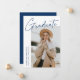 Carte de faire-part moderne de graduation avec une des photos du diplômé sur le devant avec "Graduate" dans une écriture manuscrite bleu marine avec un arrière - plan blanc. Personnalisez avec le nom du diplômé, le nom de l'école et l'année de fin d'études. La faire-part minimaliste de graduation inverse pour afficher 4 photos dans une mise en page de type grille avec les plans futurs du diplômé ou d'autres textes personnalisés ci-dessous. Le faire-part de 5 diplômes photo est parfait pour les diplômés du secondaire et du collège.