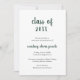 Carte de faire-part minimaliste avec un design simple et classique avec "classe de l'année" et le nom du diplômé dans une épaisse forêt verte écriture manuscrite sur un arrière - plan blanc. L'arrière est vert forêt solide. Une carte de faire-part traditionnelle avec une touche moderne pour une jeune diplômée.