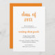 Carte de faire-part minimaliste avec un design simple et classique avec "classe de l'année" et le nom du diplômé dans une épaisse écriture manuscrite orange sur un arrière - plan blanc. L'arrière est orange solide. Une carte de faire-part traditionnelle avec une touche moderne pour une jeune diplômée.