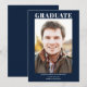 Carte simple de graduation photo bleue plat faire-part. Remplacez la photo par la vôtre et modifiez le texte.
