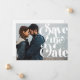 Simple Retro Typographie Enregistrer la date Faire-part photo. Customisez tous les graphiques et le texte pour qu'ils correspondent aux couleurs mariages.