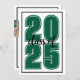 Un faire-part de graduation verticale intemporelle et polyvalente avec l'année "2025" en caractères verts gras, avec "classe de" élégamment écrit en écriture noire à travers le milieu. Le design comprend des cadres de ligne noirs élégants à l'avant et à l'arrière, ajoutant une touche polie. Entièrement personnalisable, vous pouvez ajuster les couleurs de l'année, du texte et de l'arrière - plan en fonction des couleurs de l'école ou de votre thème. L'arrière reflète l'avant avec un cadre en ligne noire propre, offrant de l'espace pour les photos et un message sincère des parents. Ce design sophistiqué et classique est parfait pour célébrer cette réalisation majeure.