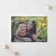 Parfois, la simplicité est préférable — simple une grande photo "Surprise, nous nous sommes fiancés !" faire-part fiançailles avec vos informations fiançailles au fond. Photo espace réservé modèle avec l'aimable autorisation de Unsplash avec un design personnalisé par Holiday Hearts Designs.