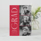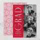 Faire-part de graduation élégante avec les trois photos du diplômé situées à droite du design dans une mise en page verticale. Le " Grad " est présenté en blanc, de style art déco moderne, avec un arrière - plan rouge. Personnalisez le faire-part moderne de diplôme en photo en ajoutant le nom du diplômé, l'année de diplôme et le nom de l'école. La conception inverse pour afficher un arrière - plan tourbillon géométrique rouge et blanc. Parfait pour les bacheliers et collégiaux !