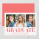 Célébrez le jalon de votre diplômé avec ces annonces minimalistes de remise de diplômes, avec trois de leurs photos préférées en accompagnement de lettres gras "Graduate" corail. Ce design moderne et élégant peut être entièrement personnalisé avec le nom du diplômé, le nom de l'école et l'année de diplôme, ce qui en fait la façon parfaite de partager leurs réalisations. Idéal pour les diplômés du secondaire et du collège, cet élégant faire-part multi-photo offre une façon contemporaine et élégante d'annoncer leur journée spéciale à des amis et à la famille.