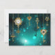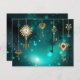 Or, clés antiques avec engrenages et cadrans accrochés sur chaînes dorées sur arrière - plan vert lumineux.