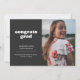 Annoncez la grande réussite de votre diplômé avec cette faire-part de graduation simple mais élégante. Il comporte les mots "grad de félicitations" dans une police de style rétro blanc sur un arrière - plan couleur ardoise ainsi que des espaces pour une photo à la fois devant et derrière. Le dos de la faire-part offre également un espace pour une note personnelle sur le diplômé, y compris les plans futurs.
