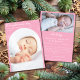 Carte Faire-part de naissance de Noël - Premier Noël du bébé - Modèle de Noël Pink clair Célébrez le premier Noël de votre bébé avec cette carte faire-part de naissance de Noël élégante avec un arrière - plan rose clair élégant, un design délicat de flocon de neige et une typographie stylisée. Ce modèle de carte de vacances entièrement modifiable comprend de l'espace pour deux photos, vous permettant de présenter les moments spéciaux de votre petit. Parfait pour les nouveaux parents qui annoncent l'arrivée de leur bébé pendant la période des fêtes, cette carte de Noël imprimable est facile à customiser avec vos propres textes et images. Une façon magnifique et mémorable de partager la joie du premier Noël de votre nouveau-né avec votre famille et vos amis. Caractéristiques clés : Elégant faire-part de naissance de Noël Rose clair avec des accents subtils de flocon de neige Élégant script et police de calligraphie moderne Disposition inclut 2 espaces réservés pour photo Texte entièrement modifiable - personnalisez en quelques minutes Idéal pour la première carte de Noël, le faire-part de vacances ou le salut saisonnier du bébé