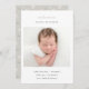 Birth announcement cards featuring classic typography with floral pattern on soft neutral beige color.