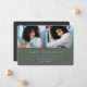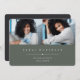 Le faire-part photo de graduation simple et moderne comporte deux photos alignées côte à côte, avec le nom du diplômé, l'école et l'année de classe en dessous en lettres blanches sur un arrière - plan vert sauge foncé. Le nom et l'école de votre diplômé apparaissent en dessous. Ajoutez un message personnel à l'arrière, ainsi qu'une photo supplémentaire.