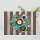 Faire-part Steampunk Clock and Turquoise Roses on Striped