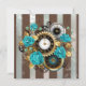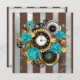 Faire-part Steampunk Clock and Turquoise Roses on Striped