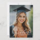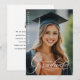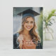 Célébrez l'étape importante de votre diplômé avec cette annonce de remise de diplôme avec superposition de photo et typographie moderne ! Ce design double face saisissant mélange parfaitement une photo en taille réelle avec une typographie élégante en écriture blanche, créant un souvenir personnalisé. Personnalisez le recto avec le nom du diplômé, l'école et l'année de remise de diplôme superposés sur l'image de votre choix, tandis que le verso comporte un message sincère et modifiable. Parfait pour les annonces modernes et sentimentales, ce modèle est idéal pour une mise en ligne numérique ou des cartes imprimées de haute qualité. Que vous célébriez les réalisations au lycée, à l'université ou à l'école supérieure, ce design offre une sophistication sans effort avec une touche de nostalgie.