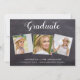 Annoncez votre remise de diplôme à vos amis et à votre famille avec ces cartes d'annonce de fin d'études rustiques en ardoise de tableau noir, amusantes et modernes avec collage de photos. Personnalisez-les avec 3 de vos photos préférées de fin d'année ou d'université, et ajoutez l'année de remise de diplôme, le nom, le lycée ou l'université. Ces cartes de fin d'études uniques, tendance et élégantes laisseront une impression durable sur votre famille, vos amis et vos camarades de classe ! COPYRIGHT © 2020 Judy Burrows, Black Dog Art - Tous droits réservés. Annonce rustique de fin d'études personnalisée avec 3 photos sur tableau noir.