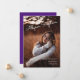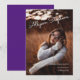Conception simple et élégante d'annonce de remise de diplôme avec texte blanc, avec une grande photo sur le devant avec votre nom en haut dans un style de signature et l'école et la classe en bas. Le fond est violet. Idéal pour les remises de diplôme de lycée ou d'université. Fonctionne mieux avec une photo sombre.