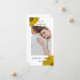 Annoncez votre nouveau statut de mariée après votre mariage privé ou l'évasion secrète avec le joli Carte photo de tournesol jaune juste marié. Personnalisez-le avec les noms de la mariée et du marié, la photo du mariage et la date de la cérémonie de mariage d'été ou d'automne. Cette photo simple mais élégante de faire-part à fleurs personnalisée présente une photo florale de tournesols jaunes fleuris ornant les coins d'un arrière - plan blanc.