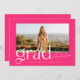 Cette faire-part moderne et tendance de graduation dispose d'une palette de couleurs rose et blanc chaud et d'une grande photo de votre diplômé. Un " Grad " audacieux et élégant orne l'avant. Le dos de la carte est simple et vous permet d'en savoir plus sur votre diplômé et son plan pour l'avenir. Ou, vous pouvez le changer en une invitation de remise de diplômes. Vous pouvez trouver d'autres versions de ce design dans mon magasin Zazzle.
