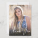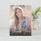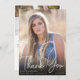 Carte de remerciements photo de superposition de script tendance - Votre diplômé est présenté sur notre faire-part de remise de diplômes, en couleur, saigné plein sur le devant de l'invitation et une deuxième photo au dos de la carte avec votre remerciement personnel. Carte également caractéristiques, jolie typographie manuscrite de style script.