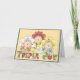 Trois bébés mignons de l'art populaire prim avec des bonnets et des bouquets de fleurs, et l'art de mot "Triplé Joie" en lettres patchwork. Une merveilleuse carte pour annoncer la naissance de triplés, ou pour féliciter un couple pour leurs trois nouveaux bébés ! Il y a aussi des timbres-poste assortis.