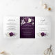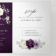Faire-part Trois Volets Aubergine Violet Prune Ivoire Blanc Floral Mariage