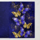 Composition des luxueux papillons saphir et bijoux en or sur arrière - plan bleu texturé.